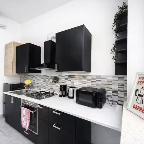 L’angolo cottura, spazioso e completamente attrezzato, consente di cucinare comodamente anche durante soggiorni più lunghi.